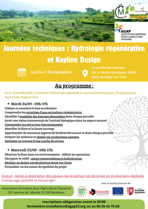 2 journées : 24 & 25 septembre venez découvrir et travailler votre projet d’hydrologie régénérative et keyline design !
