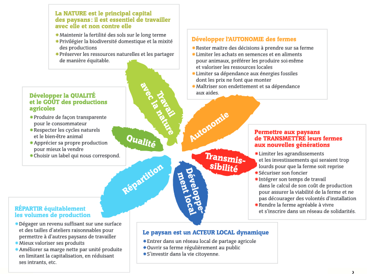 L’Agriculture paysanne permet à un maximum de paysannes et de paysans réparti.e.s sur tout le territoire de vivre décemment de leur métier, en produisant sur une exploitation à taille humaine une alimentation saine et de qualité, accessible à tous et toutes, sans remettre en cause les ressources naturelles de demain.