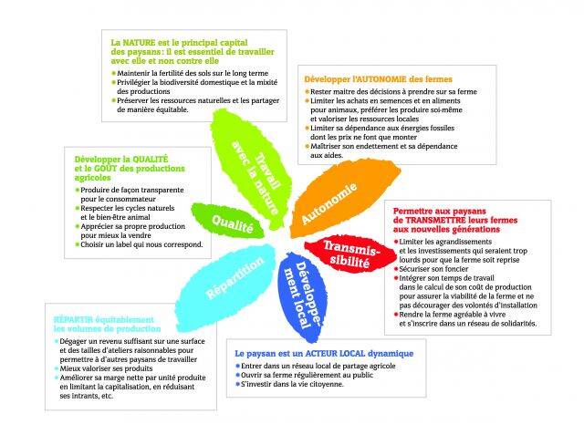 Elle doit permettre à un maximum de paysan·ne·s réparti·e·s sur tout le territoire de vivre décemment de leur métier, en produisant sur une exploitation à taille humaine une alimentation saine et de qualité, sans remettre en cause les ressources de demain. Elle participe avec les citoyen·ne·s à rendre le milieu rural vivant dans un cadre de vie apprécié de tous et toutes.