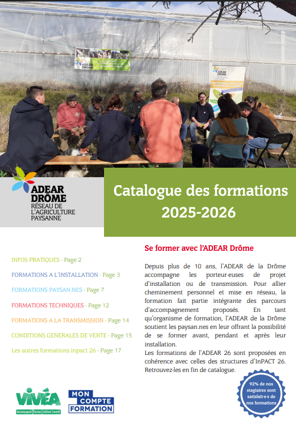 Chaque année nous organisons des formations autour de l’installation, de la transmission et de l’agriculture paysanne à destination des paysan·ne·s installé·e·s ou porteur·se·s de projet (PP).