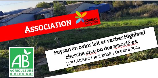 Exploitant individuel installé depuis 2005, je recherche un.e associé.e ou un couple pour créer une société. La ferme produit du lait en agriculture biologique pour la société OLGA située en Lozère qui produit des yaourts de la marque VRAI ou LA BERGERIE DE LOZERE. J’ai un troupeau de 360 têtes en...
