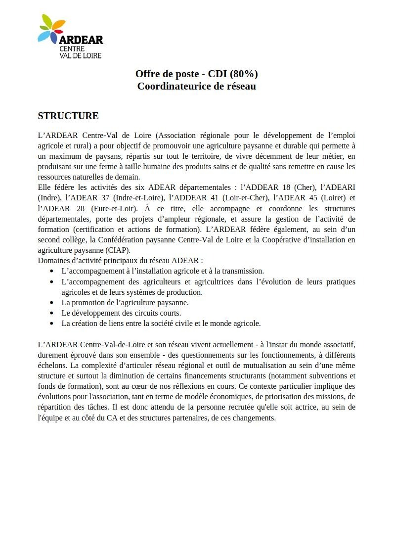 CDI 80% Coordinateurice de réseau