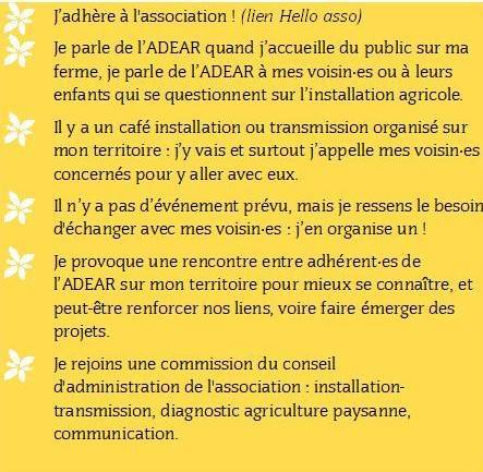 Aujourd’hui je suis en charge de l’animation de la vie associative de l’ADEAR 37 (CA, AG...). J’organise des formations changement de pratique notamment sur des thématiques liées au changement climatique et l’agroforesterie. J’ai également pour mission de faire connaître et défendre la proposition de Sécurité Sociale Alimentaire (courte vidéo explicative ici) portée par la Conf. Enfin je travaille à favoriser l’implication des adhérent.e.s Conf et ADEAR en proposant des modes d’actions correspondants aux envies et temps disponible de chacun.e."