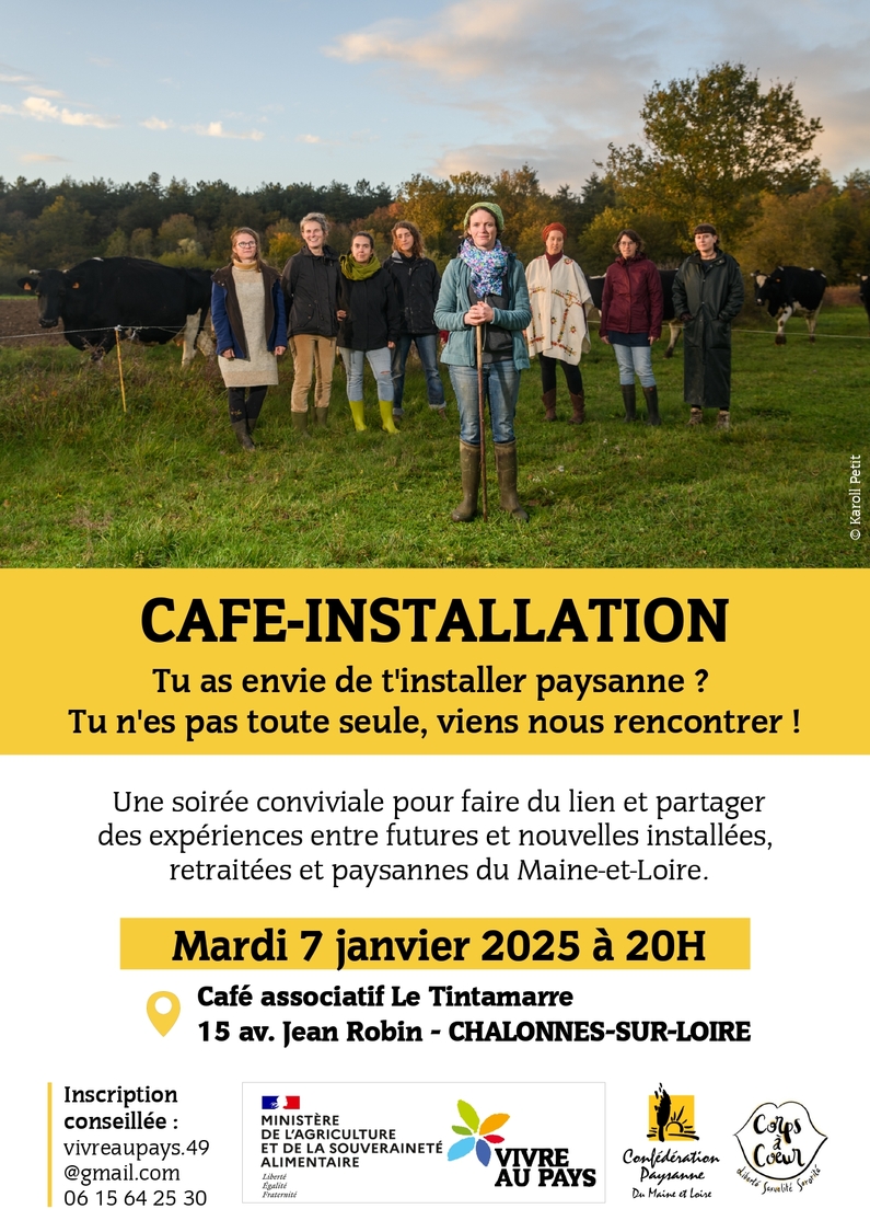 L’association 𝗩𝗶𝘃𝗿𝗲 𝗮𝘂 𝗣𝗮𝘆𝘀 (qui promeut l’agriculture paysanne en Maine-et-Loire) 𝗲𝘁 𝗹𝗮 𝗰𝗼𝗺𝗺𝗶𝘀𝘀𝗶𝗼𝗻 𝗙𝗲𝗺𝗺𝗲𝘀 𝗱𝗲 𝗹𝗮 𝗖𝗼𝗻𝗳’𝟰𝟵 (Confédération paysanne) t’invitent à une soirée conviviale pour faire du lien et partager des expériences !