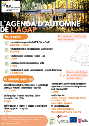 Vous l’attendiez, voici l’agenda d’automne des actions de l’AGAP !