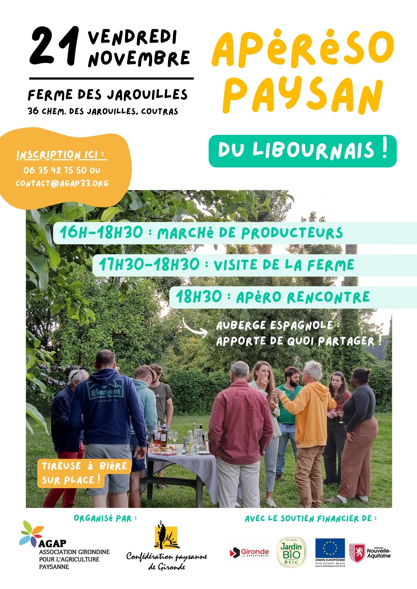 Vous êtes paysan.nes ou porteur.se de projet dans le Libournais et alentours, venez échanger et partager un temps festif avec le réseau de l’Agriculture Paysanne ! Cet évènement est en partenariat avec la Confédération Paysanne de Gironde.
