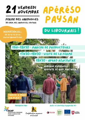 Apéréso vendredi 21 novembre à la Ferme des Jarouilles (Coutras)