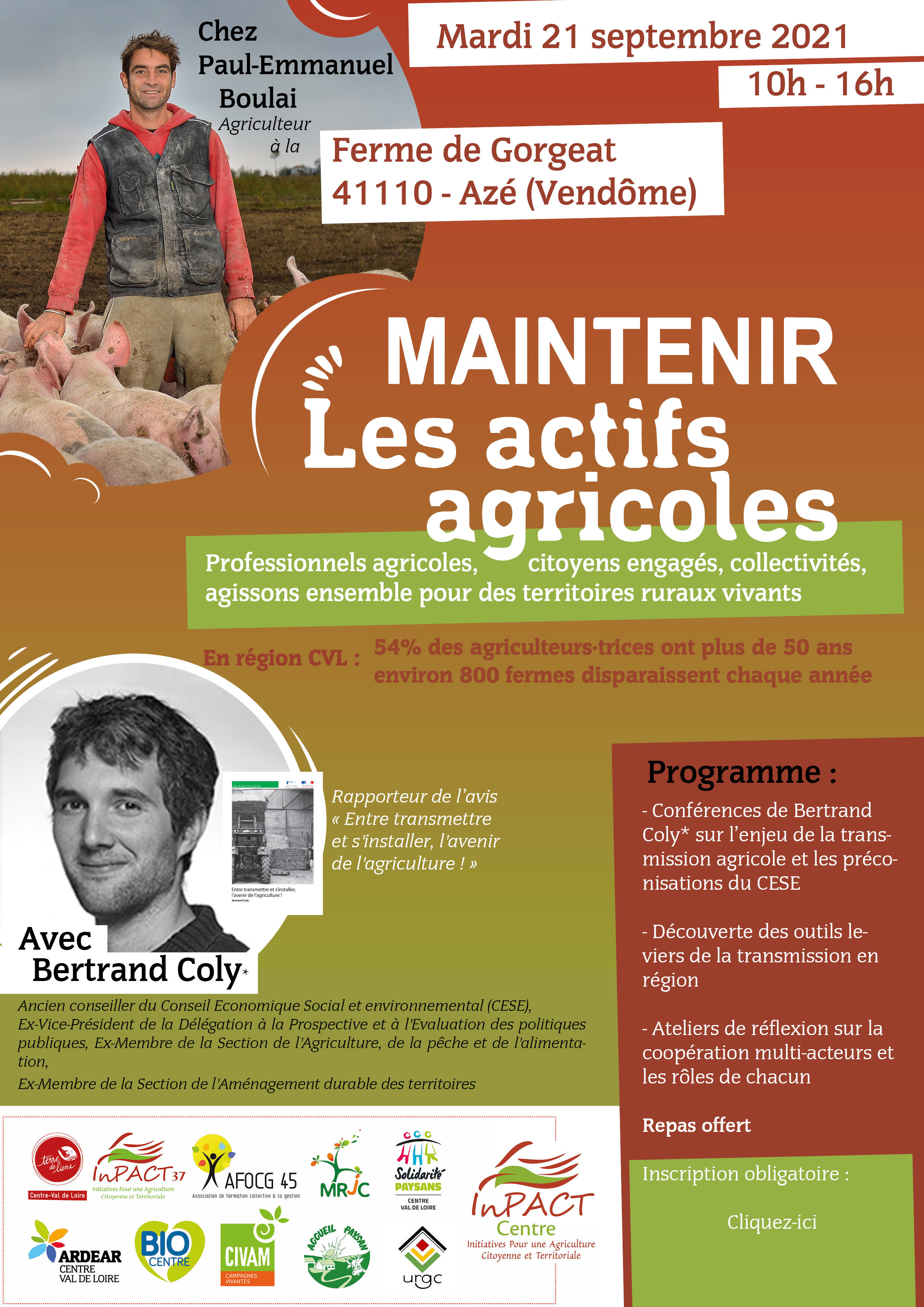 C’est à la ferme de Gorgeat, à vendôme que se déroulera le colloque "Maintenir les actifs agricoles en région Centre-Val de Loire" dans le département du Loir-et-Cher. Différentes activités ponctueront la journée autour d’un fil conducteur qu’est la transmissibilité des fermes. En effet, moins de producteurs c’est : moins d’emplois en milieu rural, une souveraineté alimentaire affaiblie, des espaces ruraux peu dynamiques, des exploitations spécialisées et de très grande taille..