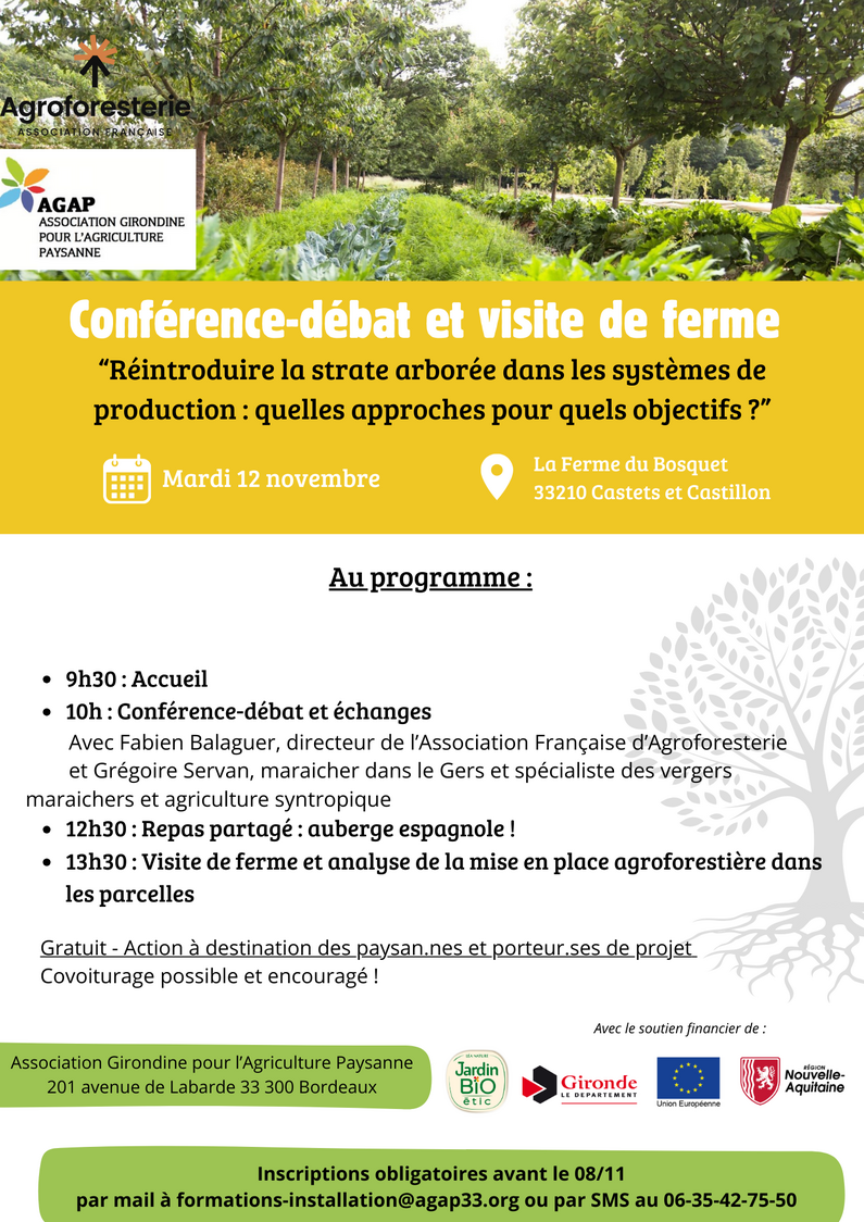 N’hésitez pas à vous inscrire par SMS à 06-35-42-75-50 ou par mail à formations-installation@agap33.org