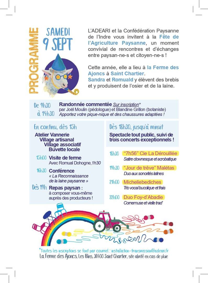 L’ADEARI et la Confédaration Paysanne de l’Indre vous invitent à la Fête de l’Agriculture Paysanne, un moment convivial de rencontres et d’échanges entre paysan-ne-s !
