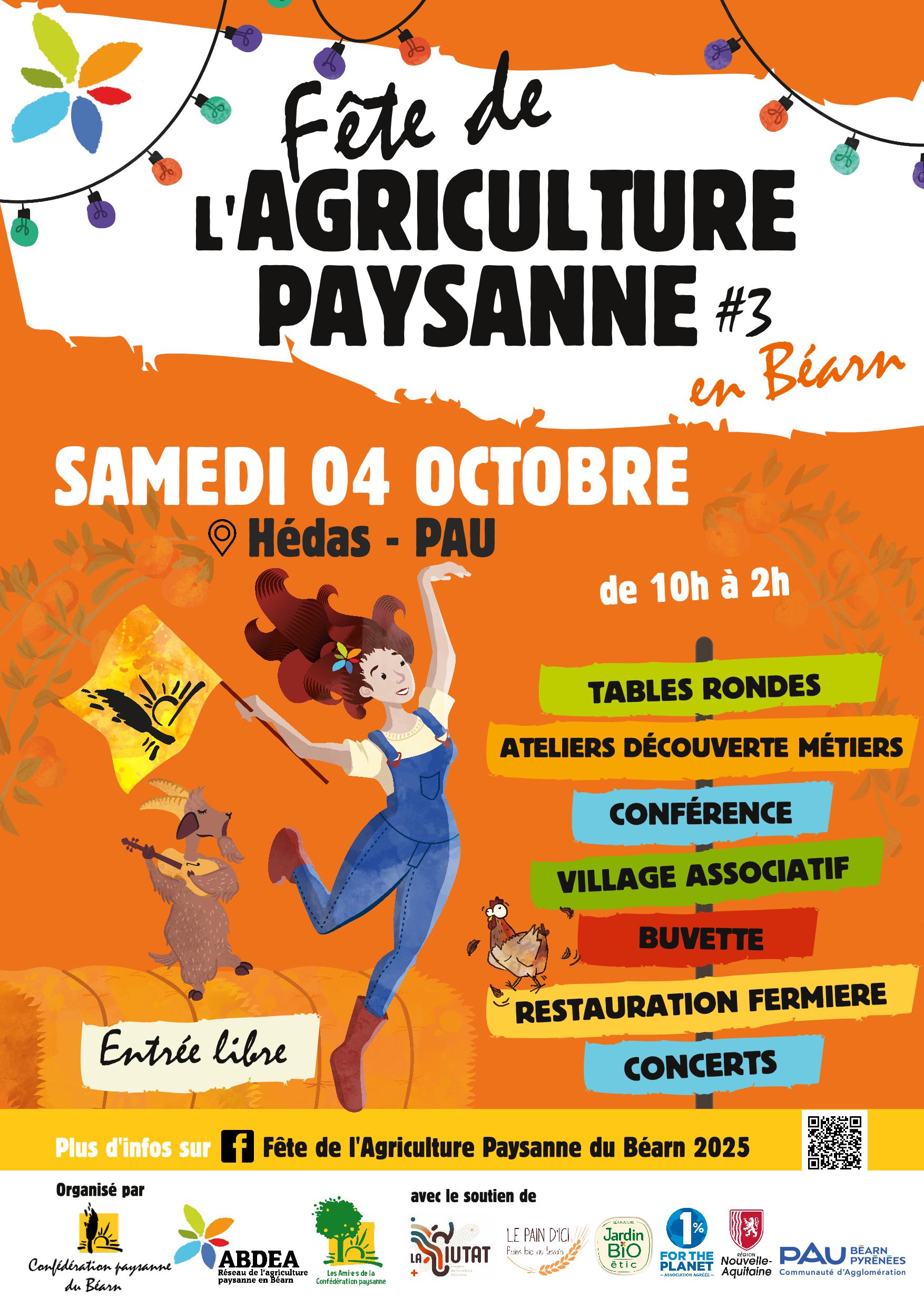 Rendez-vous samedi 4 octobre 2025 place Récaborde, au cœur du Hédas, pour un programme concocté aux petits oignons par les paysan.nes et citoyen.nes qui se mobilisent pour que vive l’agriculture paysanne sur notre beau territoire béarnais !