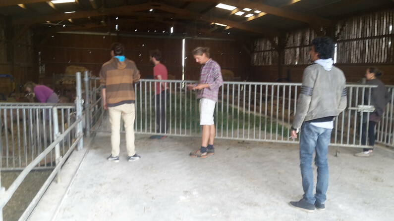 L’après-midi, Clémentine et Jonathan ont accueilli les stagiaires sur leur ferme de la Paturollerie, 1ère fermeTerres de Liens du Cher. Après avoir fait le tour de leur ferme et de leur fromagerie, la visite s’est poursuivie par un temps d’échange sur leur parcours , les difficultés rencontrées et sur les multiples métiers des paysan·nes (soin aux animaux, comptabilité, gestion de l’entreprise, transformation et commercialisation pour ne citer que ceux-là !).