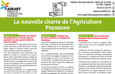 La charte de l’Agriculture Paysanne est un texte qui existe depuis 1998 sur les principes de l’Agriculture Paysanne. C’est un projet politique et une démarche dans laquelle chaque paysan.ne peut s’investir. De plus, cette charte étant un texte fondamental pour notre structure, chaque personne adhérente à l’ADEART s’engage à la respecter lors de son adhésion. C’est aussi ces mêmes valeurs que défend le syndicat de la Confédération Paysanne.
