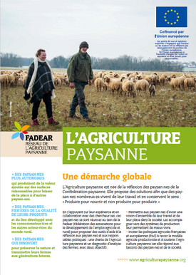 L’Agriculture paysanne est une démarche globale basée sur 6 piliers interdépendants : le travail avec la Nature, la qualité des produits, la répartition, l’autonomie, le développement local et la transmissibilité. Cette plaquette précise ce qu’est l’Agriculture paysanne et ce qu’elle n’est pas. Les 6 thèmes sont détaillés et illustrés par des témoignages de paysan.nes.