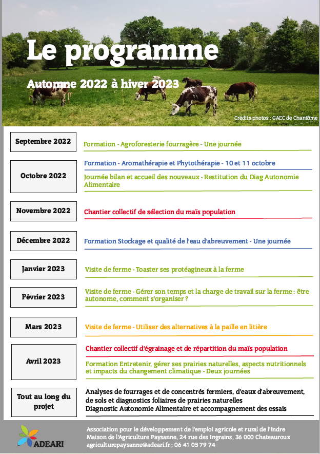 Vous souhaitez en savoir plus sur le groupe ? Entrer dans un GIEE n’implique aucune obligation de résultats ou d’assiduité ! Vous pourrez par contre bénéficier des formations, rencontres, analyses, etc. Contactez Emilie Doussin à l’ADEARI : agriculturepaysanne@adeari.fr ; 06 41 05 79 74