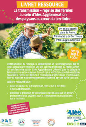 Ce livret ressource a été construit dans le cadre du plan alimentaire territorialisé d’Alès Agglomération et avec le groupe de travail sur la transmission des fermes (Addearg, Agi 30, Alès Agglomération, Chambre d’agriculture, IGP Cévennes, Syndicat des hautes vallées cévenoles, Terre de liens).
