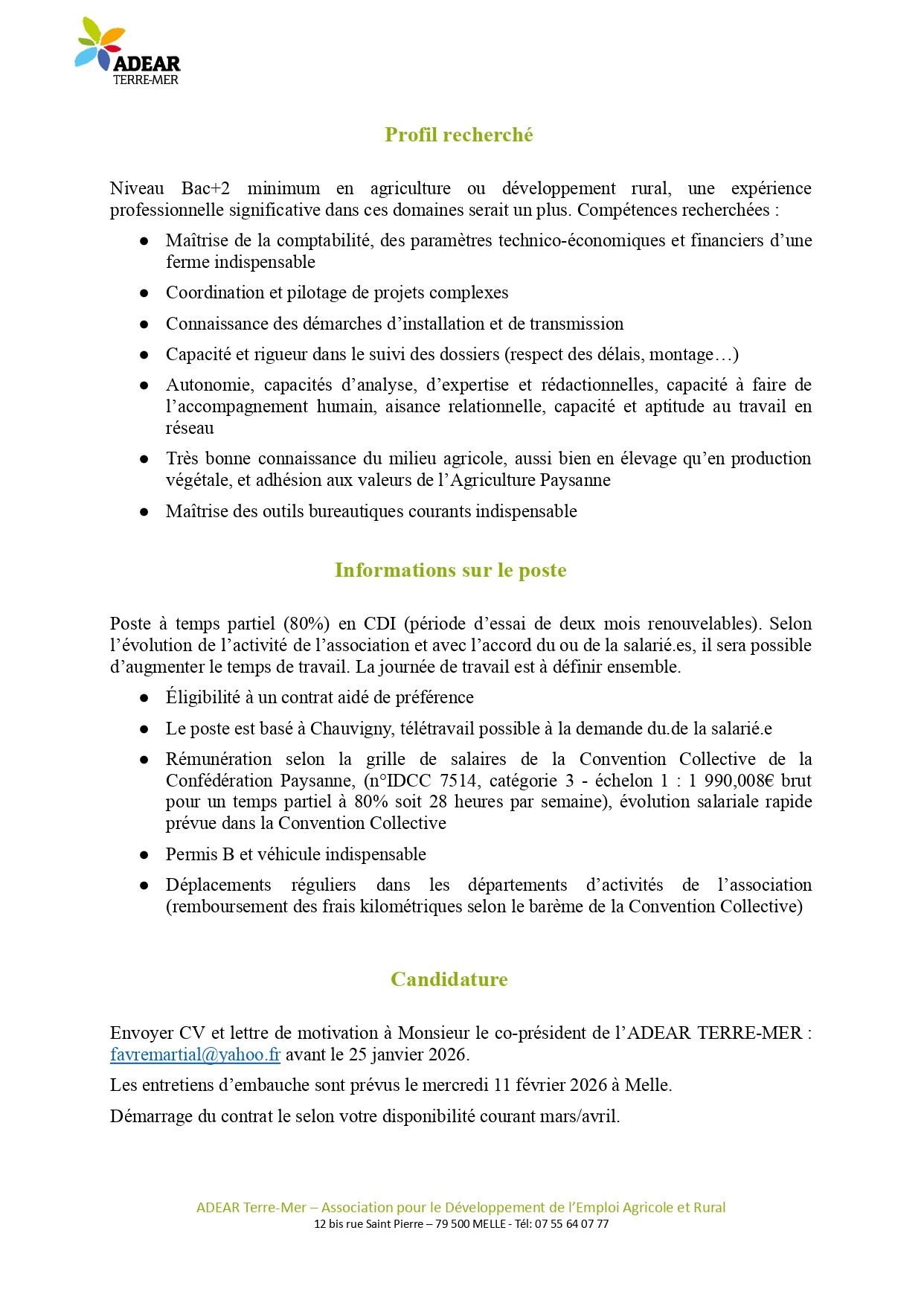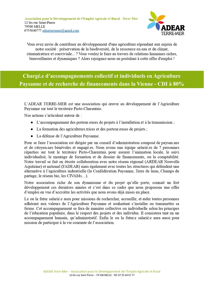 Nous recrutons notre futur.e chargé.e d’accompagnements collectif et individuels en Agriculture Paysanne et de recherche de financement dans la Vienne - CDI à 80%