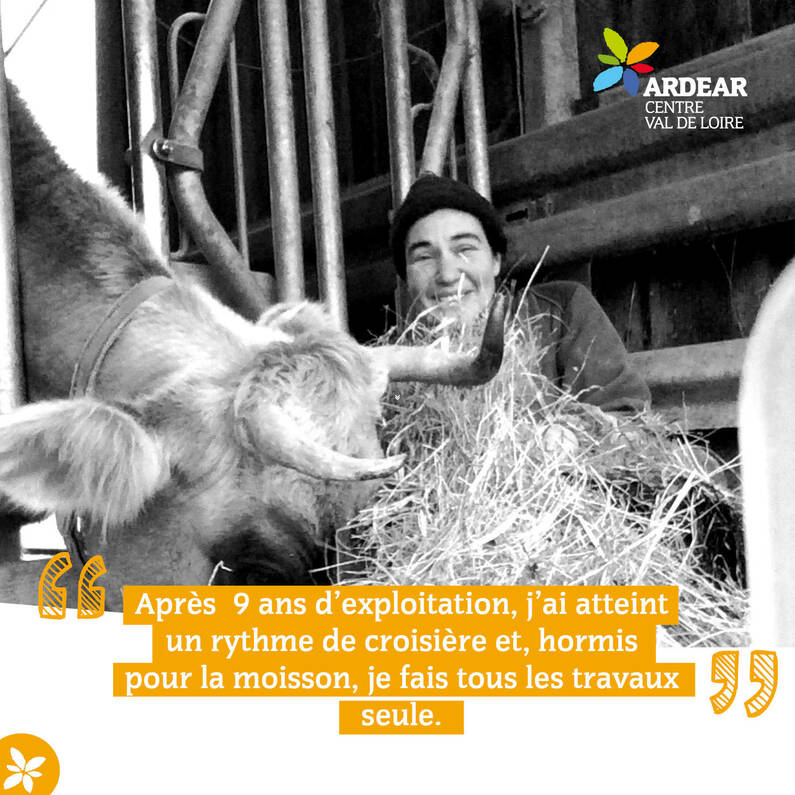 Après un burn-out en 2020, j’ai progressivement changé ma vision de la ferme. Départ du conjoint-collaborateur, vente de la moitié du cheptel, semaine de 35 heures (hormis pendant les fenaisons) et vacances. Après 9 ans d’exploitation, j’ai atteint un rythme de croisière et, hormis pour la moisson, je fais tous les travaux seule. Nous nous organisons entre voisins pour les vacances. Plus récemment, j’ai mis une partie de la ferme en vente et ai repris des études. Mon objectif est de faire un doctorat en production animale en zone désertique.