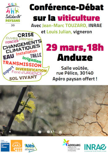 Les associations Solidarité Paysans 30 et Addearg vous invitent à une conférence débat sur la viticulture :