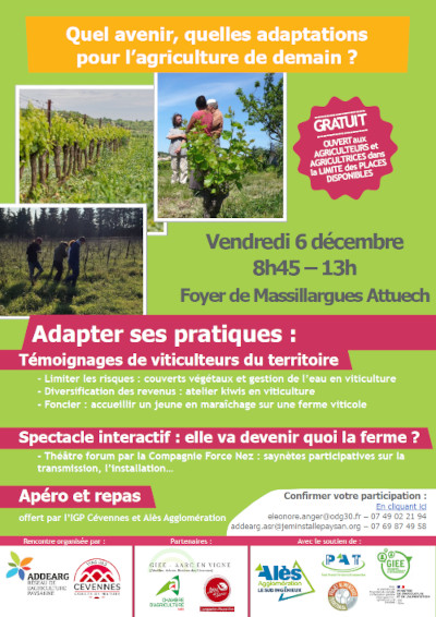 L’Addearg et l’IGP Cévennes vous invitent à une matinée pour questionner l’avenir de l’agriculture de demain, en particulier la filière viticulture.