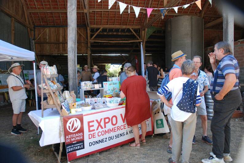 Dès 14h, nous avons accueillis de nombreuses personnes curieuses, qui ont découvert les différentes associations partenaires au village associatif, les producteurs et artisans locaux présents sur le marché, et nos actions menées sur le département avec nos stands Confédération Paysanne, ADEARI et Les Ami-e-s de le Conf’.