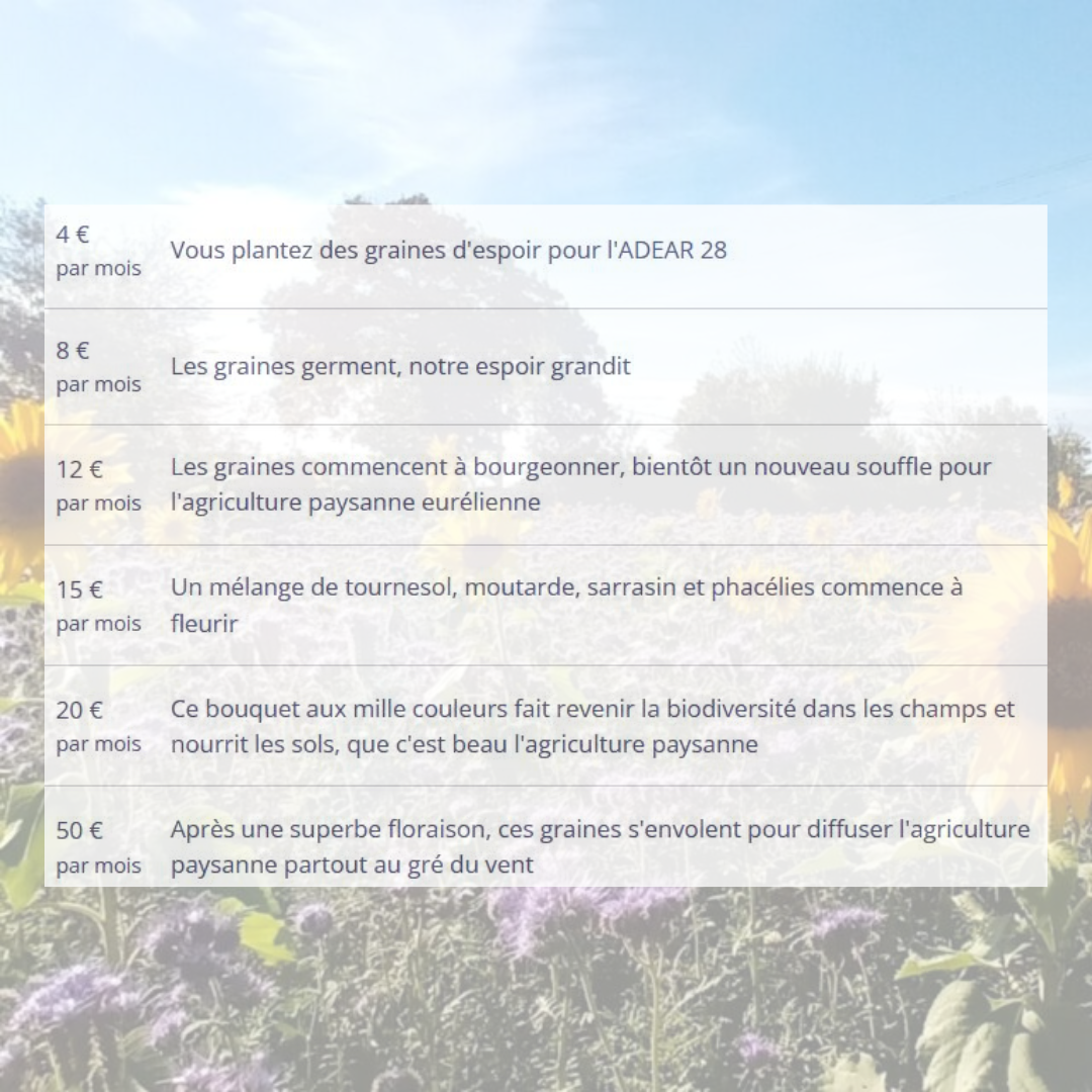 Ces ADEARs par des actions de sensibilisation, de formation, d’accompagnement lors de l’installation, du changement de pratiques agricoles ou de la transmission œuvrent pour la généralisation de l’agriculture paysanne.