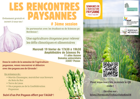 Dans le cadre de la semaine d’Agriculture paysanne, venez échanger entre paysa-nes et citoyen-nes autour de l’implication citoyenne dans le monde agricole d’aujourd’hui !
