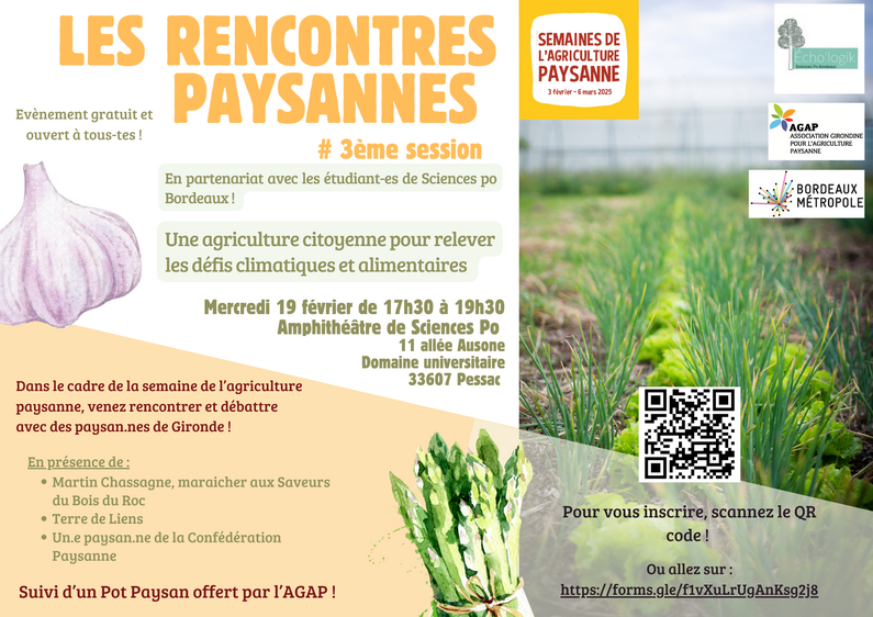 Avec l’association Echologik des étudiant-es de Sciences po Bordeaux, l’association Terre de Liens et deux paysan-nes !