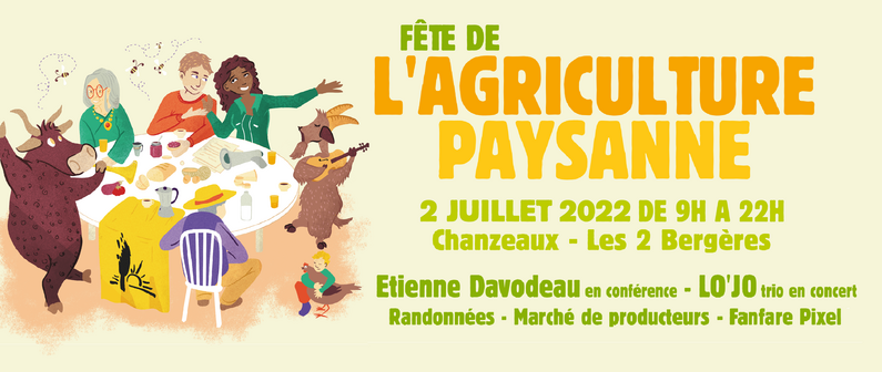 Après la randonnée et le marché de producteurs, cette journée a été marquée par les retrouvailles en public d’Etienne Davodeau et des héros de sa BD « Rural ! » 21 ans après. La soirée s’est conclue en musique par le concert de la fanfare Pixel puis du trio Lo’Jo !